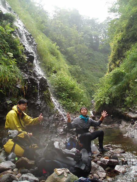 に登る。それ以外は大した滝も無く小滝を快適に登っていくと水が涸れ稜線がすぐそ