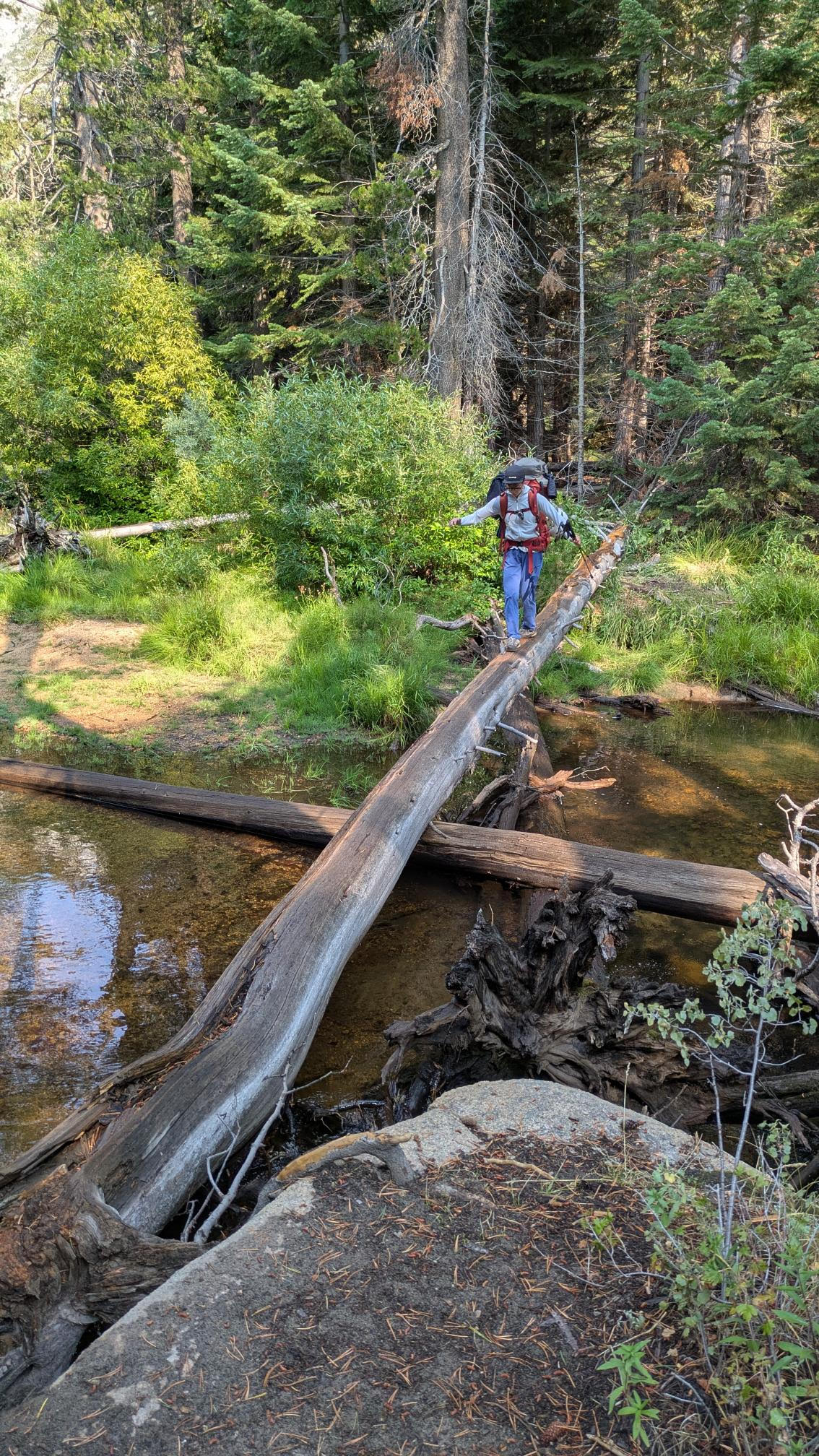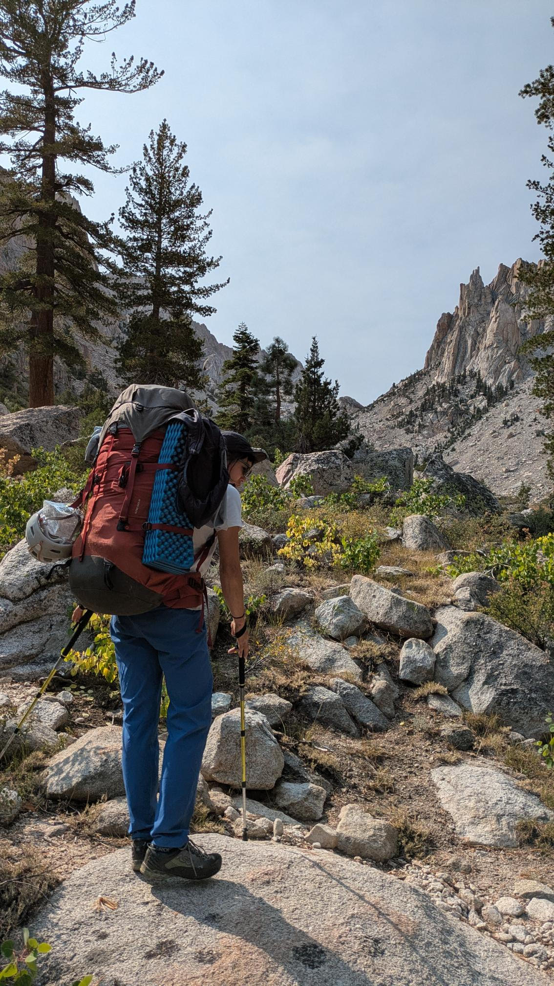 Mono villageからつい先週往復したトレイルを歩く。Yosemite wilderness の北東隣に位置するHoover wildernessに入り込むこのトレイルは標高2200mのTwin lakeから始まり、巨大なパインツリーの森を過ぎると左右に3000mをゆうに超える雄大な山が現れだし、まったく良い気分になる。
