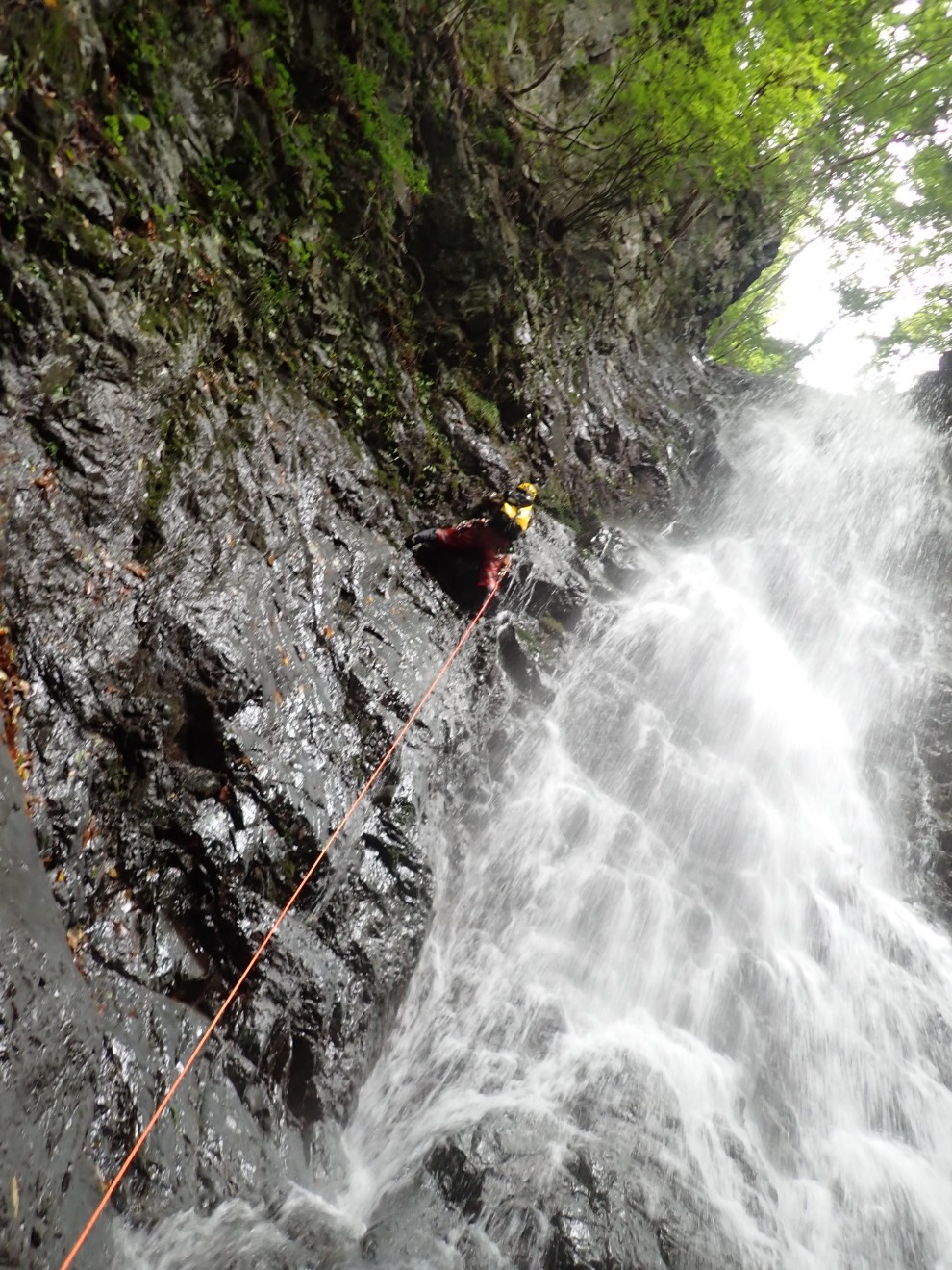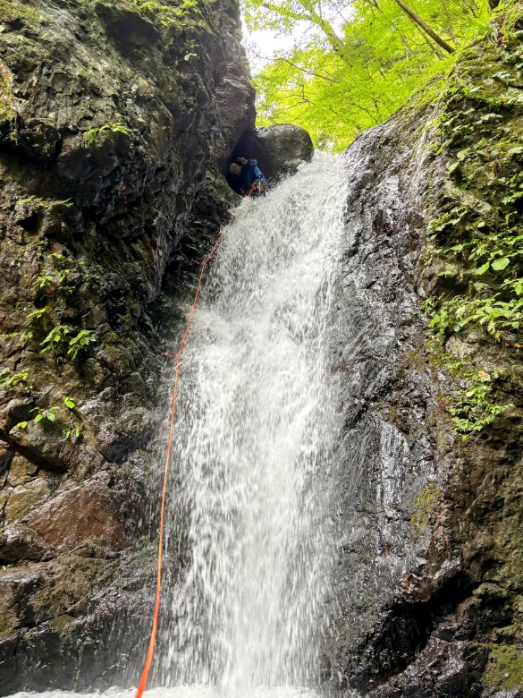 30m大滝。水流が多いのでがっつりシャワークライミング。上部のスラブがスリル満点。